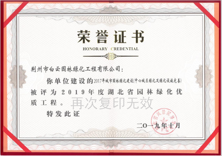 2019年度湖北省園林綠化優(yōu)質(zhì)工程